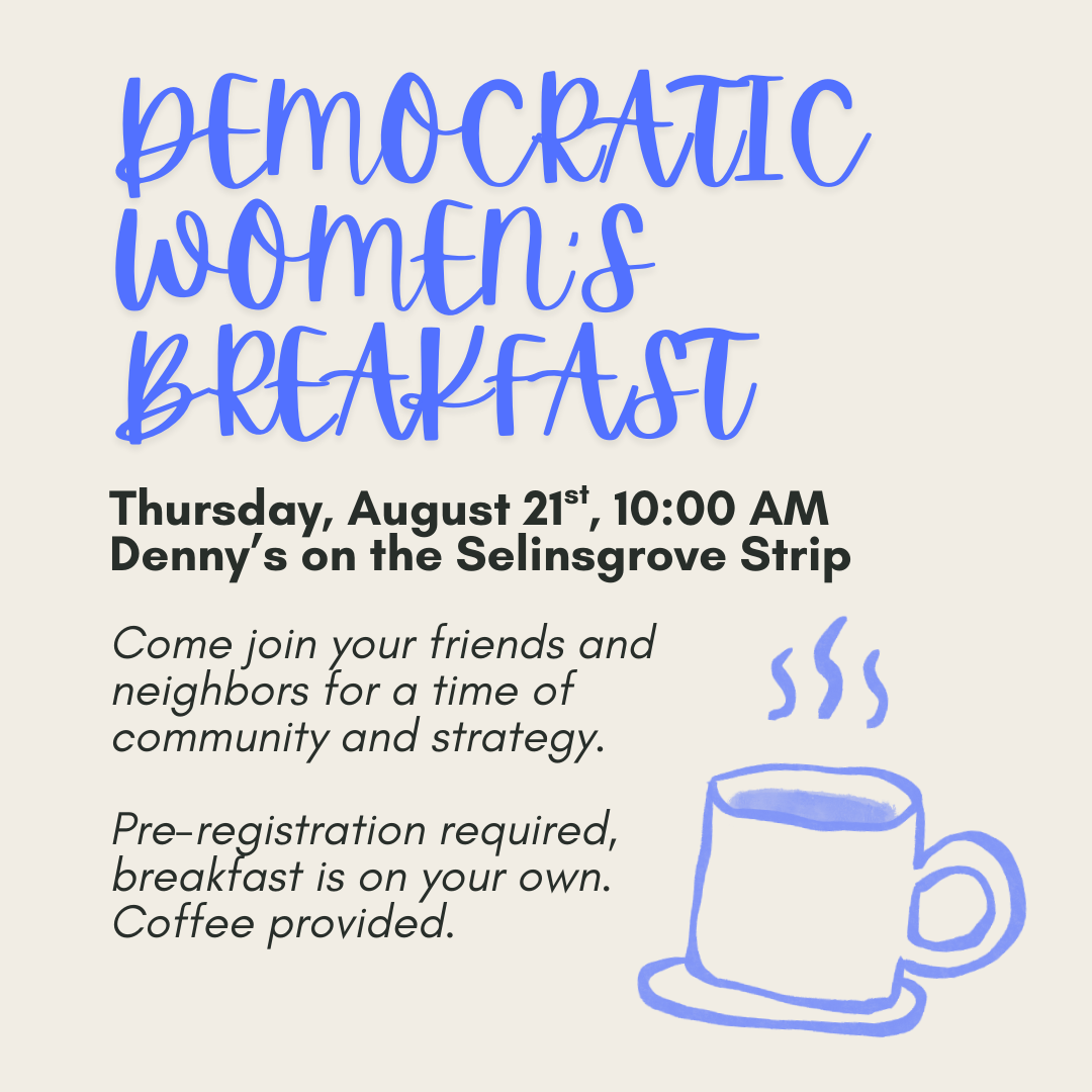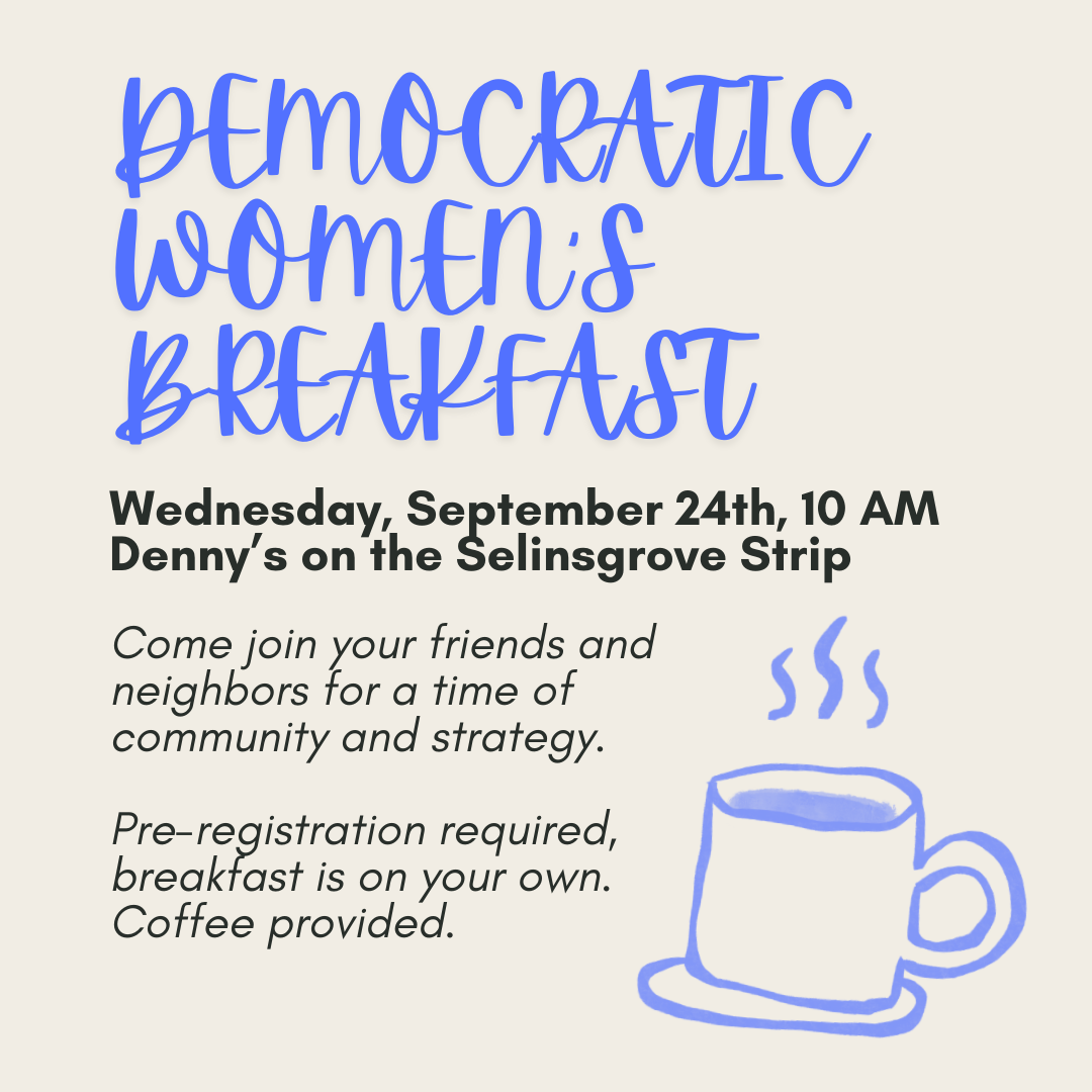 Join us for another Democratic Women's Breakfast at a private residence in Winfield. Address will be given upon registration.