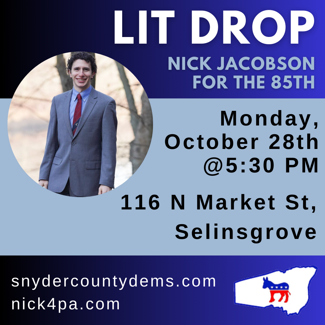 Join us as we drop literature specifically for Nick Jacobson's campaign! You get to choose which area to go to, bring your friends!